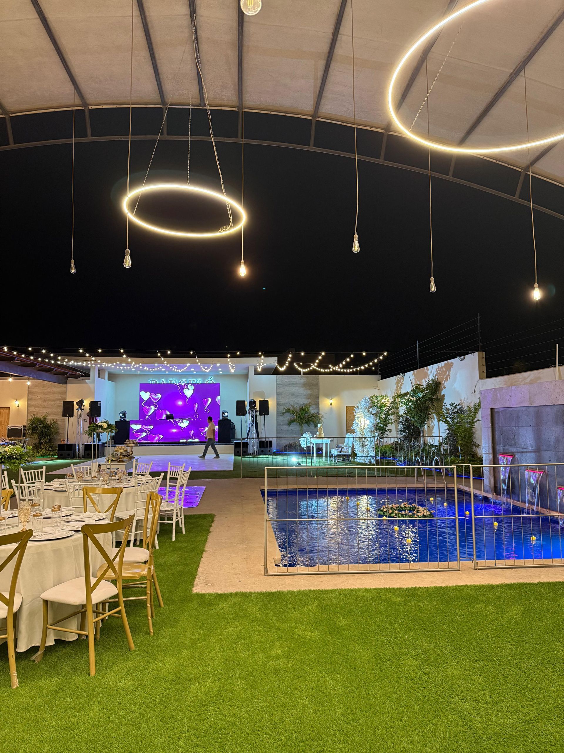 Nuestro salón de fiestas es amplio y cuenta con alberca y chapoteadero, para que tus invitados la pasen de lujo refrescándose con todas las amenidades que brindamos.